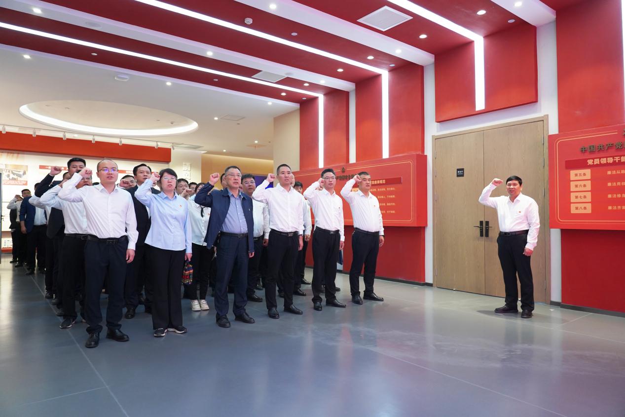 在鮮紅的黨旗下,全體人員在黨委委員、紀(jì)委書記韓玉奇的帶領(lǐng)下莊嚴(yán)肅立、高舉右手,重溫入黨誓詞,銘記入黨初心。