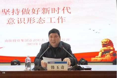 為深入學(xué)習(xí)貫徹習(xí)近平新時(shí)代中國(guó)特色社會(huì)主義思想和黨的二十大精神,全面貫徹落實(shí)習(xí)近平文化思想和習(xí)近平總書(shū)記關(guān)于意識(shí)形態(tài)工作的重要論述精神,牢牢把握鑄牢中華民族共同體意識(shí)這條主線,12月27日,南陽(yáng)投資集團(tuán)舉辦意識(shí)形態(tài)專(zhuān)題培訓(xùn),集團(tuán)黨委副書(shū)記、監(jiān)事會(huì)主席韓玉奇作專(zhuān)題授課。