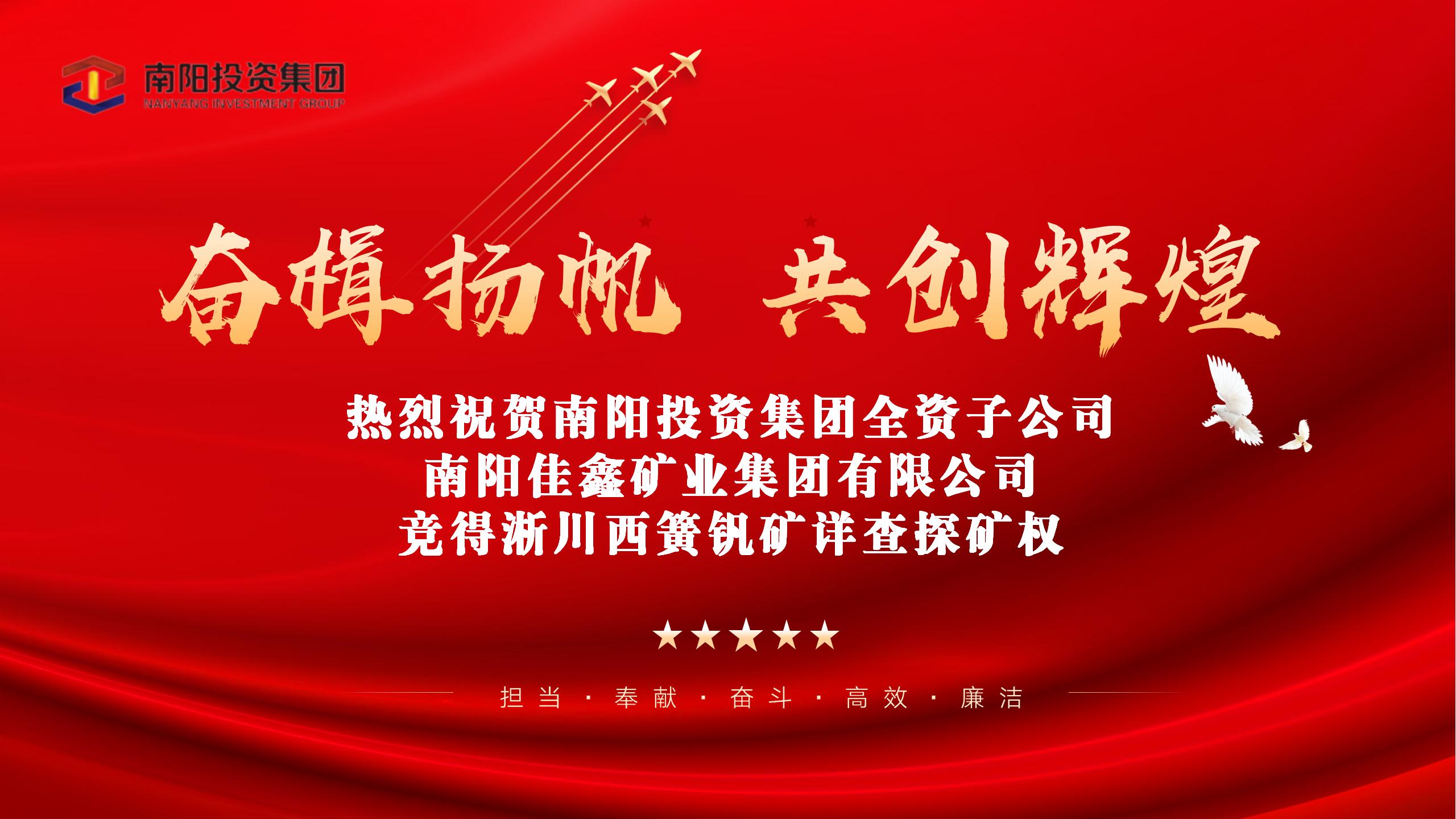近日,南陽(yáng)投資集團(tuán)全資子公司南陽(yáng)佳鑫礦業(yè)集團(tuán)有限公司以17365.76萬(wàn)元成功競(jìng)得淅川西簧釩礦詳查探礦權(quán),深入貫徹落實(shí)了市委市政府將更多核心礦產(chǎn)資源掌握在市屬?lài)?guó)資體系的指示精神,進(jìn)一步壯大國(guó)有資產(chǎn),加快市屬?lài)?guó)有企業(yè)市場(chǎng)化轉(zhuǎn)型發(fā)展,助力了政府施政施策、推動(dòng)區(qū)域產(chǎn)業(yè)結(jié)構(gòu)升級(jí)的實(shí)際工作需要。