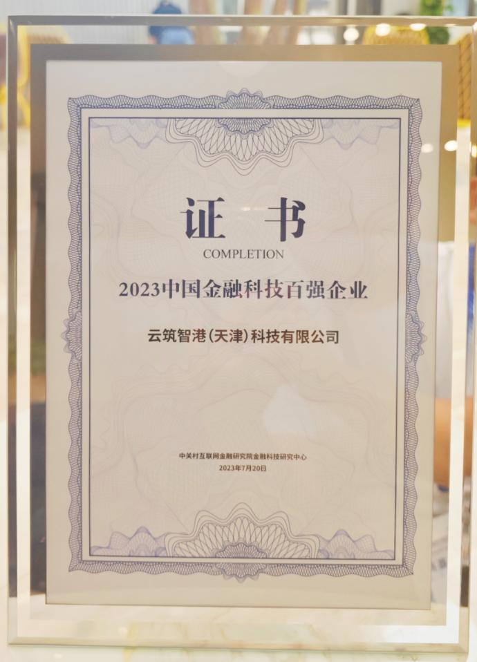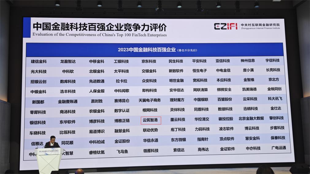 峰會揭曉了2023中國金融科技百強企業(yè)榜單。宛投云筑子公司云筑智港以強勁的專業(yè)水平、領先的科技實力成功入圍榜單,是實至名歸的榮耀,更是“十年磨一劍”的成果見證。