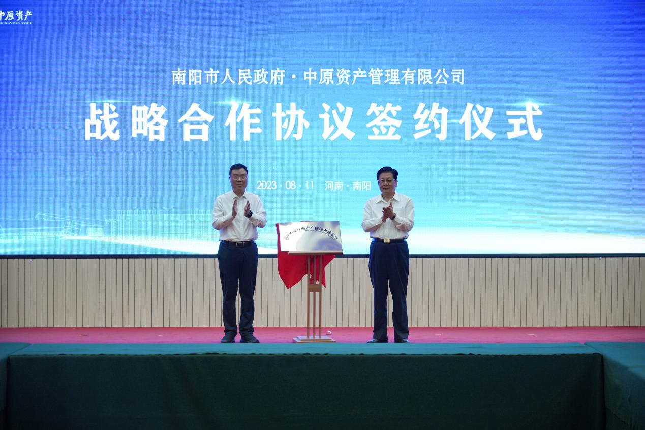 揭牌儀式舉行前,南陽(yáng)市政府與中原資產(chǎn)管理有限公司舉行了戰(zhàn)略合作協(xié)議簽約儀式,雙方簽訂了戰(zhàn)略合作協(xié)議。