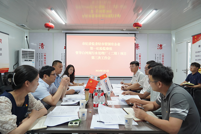 7月1日,市紀(jì)委監(jiān)委駐市管國有企業(yè)第一紀(jì)檢監(jiān)察組組長馬馳一行前往白河南污水處理廠(二期)項(xiàng)目調(diào)研督導(dǎo)基層黨建及清廉工程建設(shè)工作。集團(tuán)黨委副書記、監(jiān)事會主席韓玉奇陪同調(diào)研。