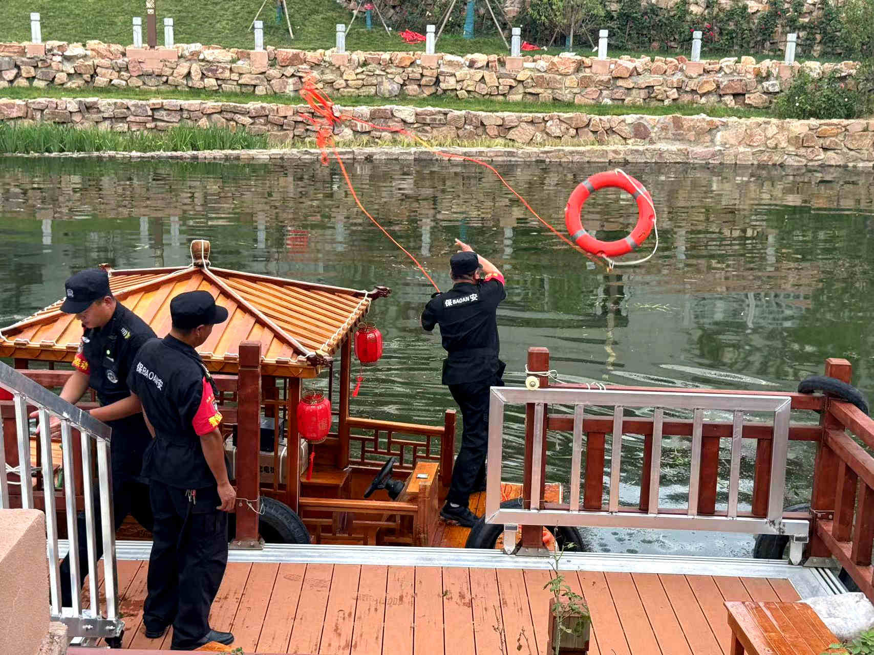 為進一步做好景區(qū)2024年安全保障工作,確保在游客高峰期活動的安全、有序,在面臨景區(qū)內可能突發(fā)的各類安全事故,確保一旦應急事件發(fā)生時處理工作能高效有序地進行,最大限度地減輕事故造成的損失,切實保障市民游客的人身安全,維護景區(qū)的正常運作,醫(yī)圣文化園開展防溺水、防汛、消防演練與培訓,旨在提高景區(qū)運營應急處理能力。