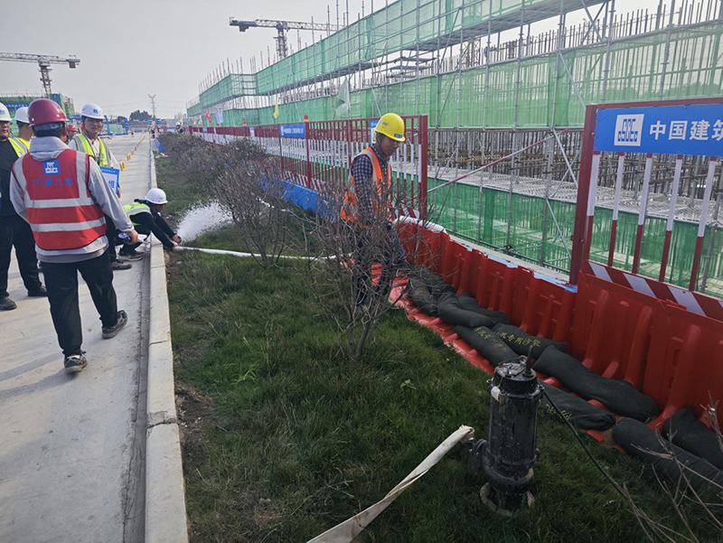 緊盯重點(diǎn)部位環(huán)節(jié),加大巡查排險(xiǎn)力度,開展建筑工地汛期安全專項(xiàng)大檢查。防汛一級應(yīng)急響應(yīng)期間,著重檢查項(xiàng)目電箱安全及二次提升泵站、鼓風(fēng)機(jī)房、綜合樓、鋼筋加工廠、水解酸化池、基坑內(nèi)部情況。完善工作協(xié)調(diào)機(jī)制,動態(tài)掌握應(yīng)急物資儲備情況,做到底數(shù)清情況明,確保關(guān)鍵時(shí)刻能夠保障需求。用足用好沙袋、水泵等應(yīng)急物資,做到能及時(shí)排水,嚴(yán)防澇水灌入。