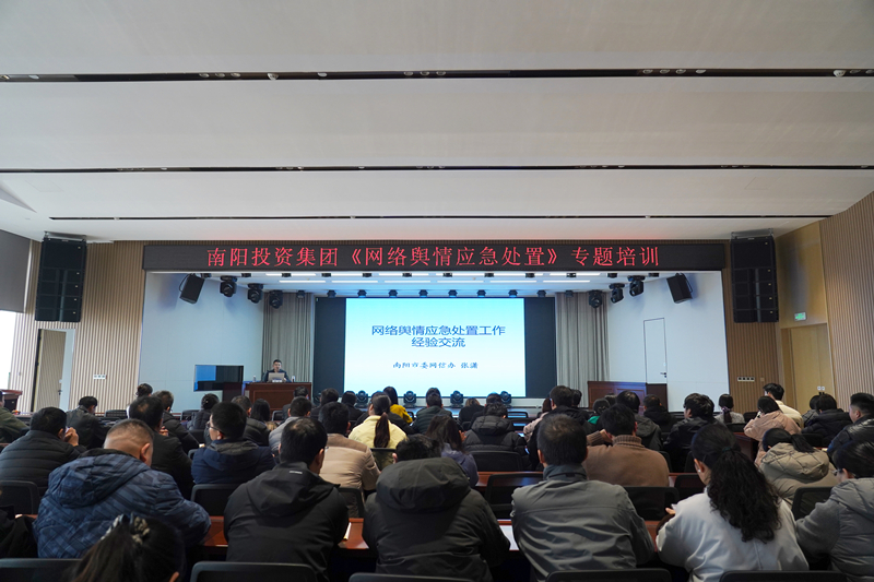為深入學(xué)習(xí)貫徹習(xí)近平總書記關(guān)于意識(shí)形態(tài)工作的重要論述,全面落實(shí)意識(shí)形態(tài)工作責(zé)任制,切實(shí)增強(qiáng)干部職工網(wǎng)絡(luò)輿情風(fēng)險(xiǎn)防范意識(shí)與應(yīng)急處置能力,筑牢意識(shí)形態(tài)安全防線。12月11日,南陽投資集團(tuán)組織開展網(wǎng)絡(luò)輿情應(yīng)急處置專題培訓(xùn),邀請(qǐng)市委網(wǎng)信辦張瀟科長(zhǎng)進(jìn)行專題授課。集團(tuán)各部室、子公司輿情工作分管領(lǐng)導(dǎo)、相關(guān)業(yè)務(wù)骨干80余人參加培訓(xùn)。